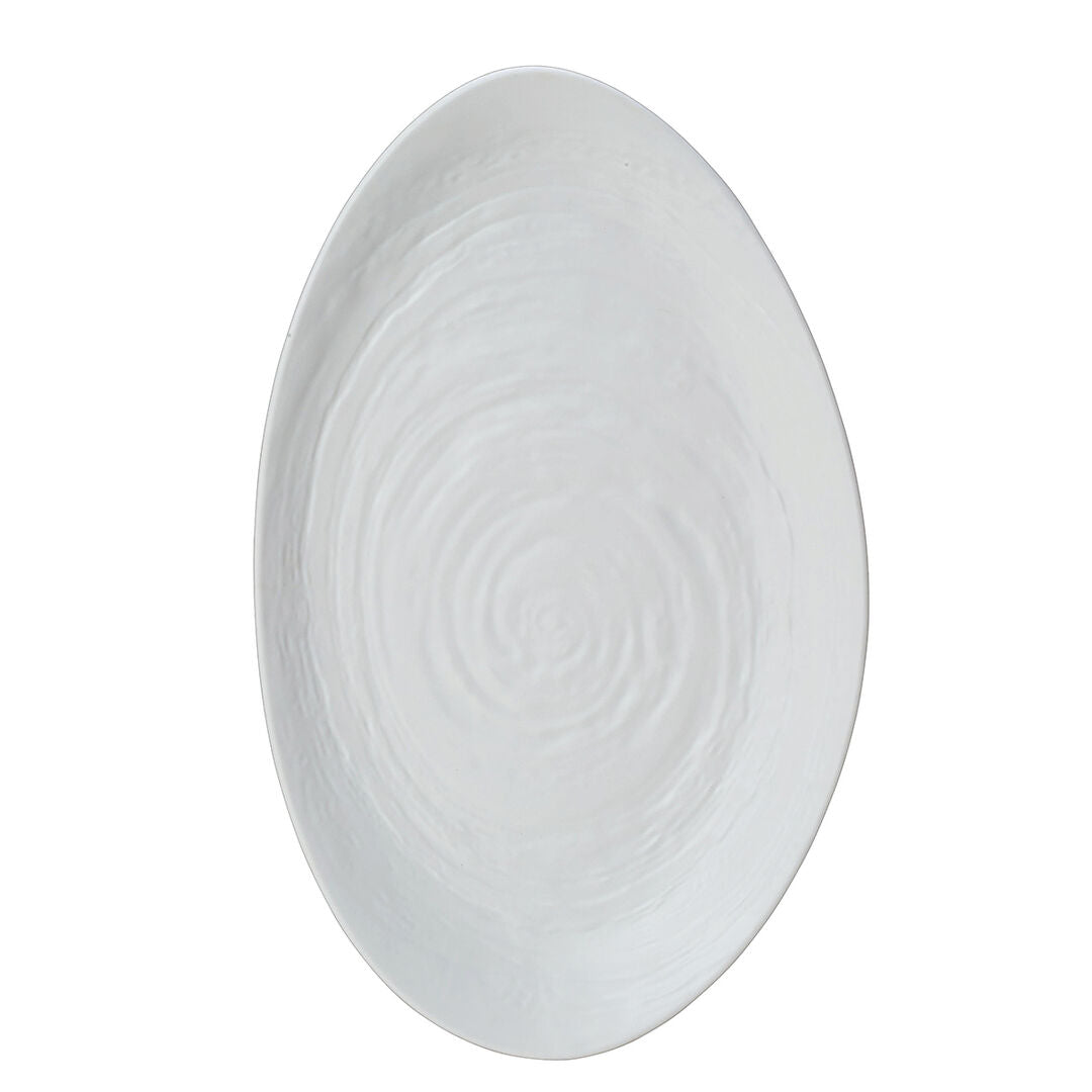 Featuring a distinctive flowing surface texture inspired by natural movement, this platter creates visual depth while maintaining a clean, contemporary white finish. Its generous oval shape is ideal for presenting shared dishes, fresh produce, desserts, and centrepiece displays.