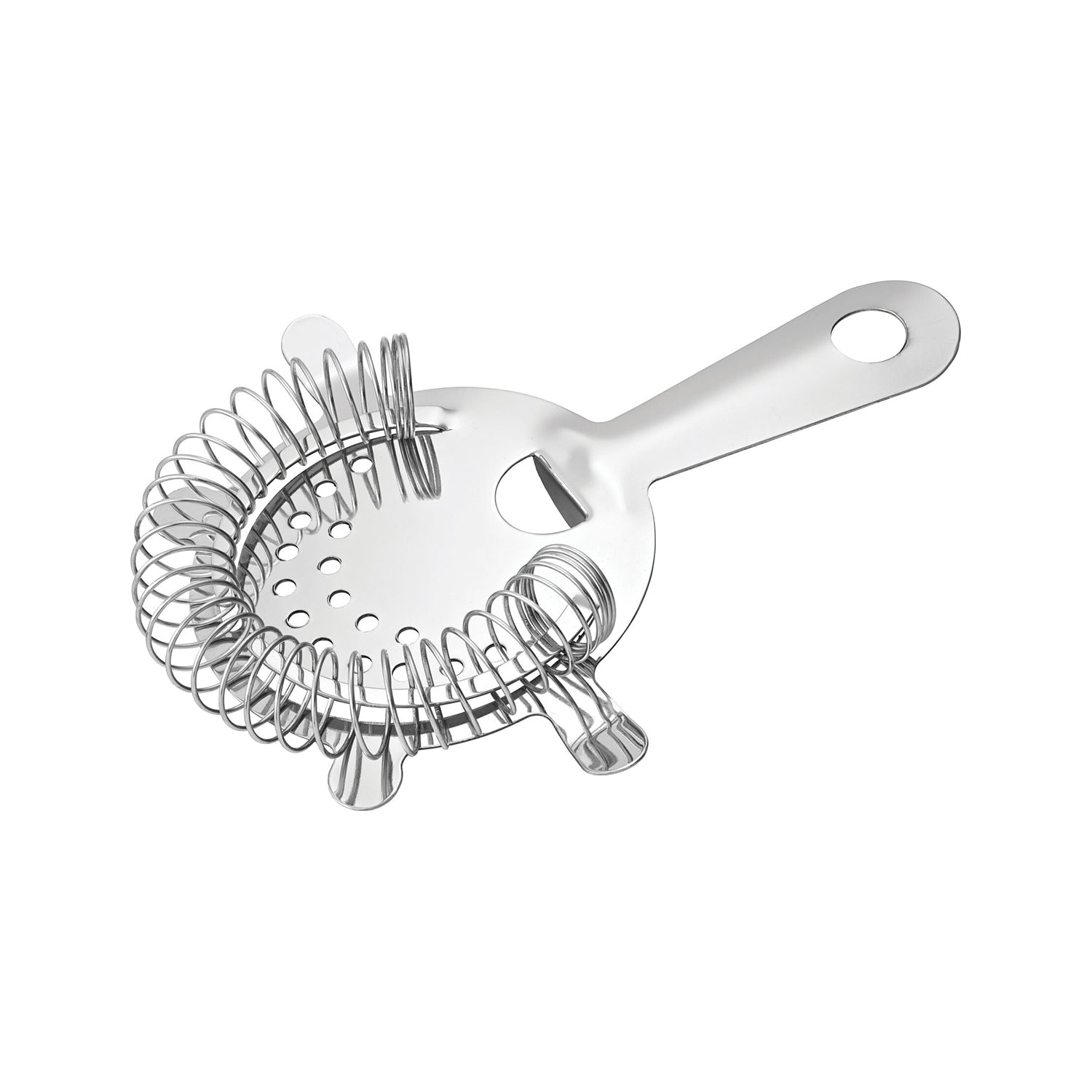 Professional 4 prong cocktail strainer designed for efficient and precise drink preparation in bars, restaurants, and hospitality environments. This classic bar strainer is ideal for filtering large ice cubes and solid ingredients when pouring cocktails from shaker tins.