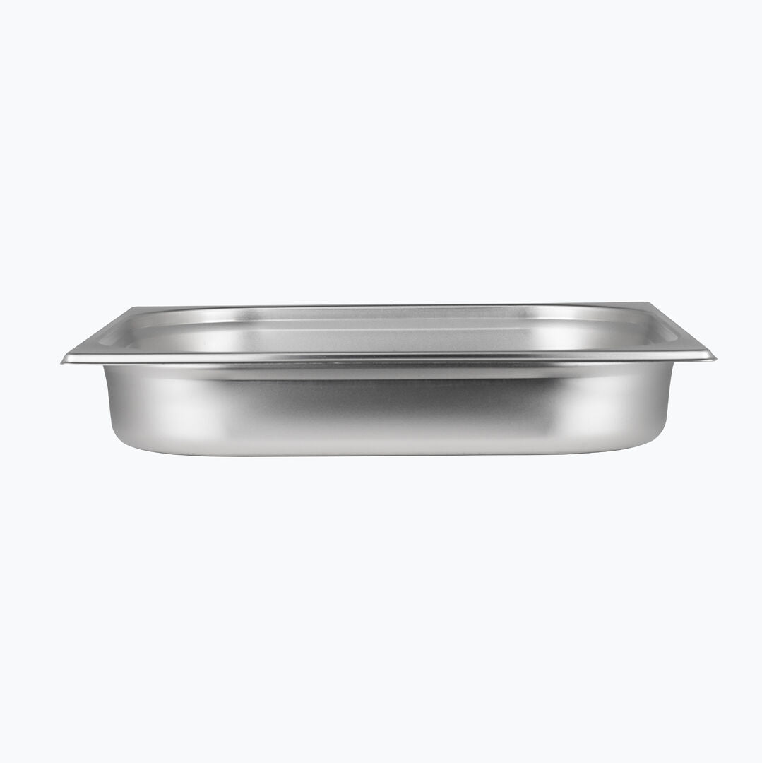 This food pan is suitable for use with compatible square chafing dish stands and lids, making it ideal for hotels, restaurants, banquets, and catering events. Its generous capacity allows for efficient food service and presentation.