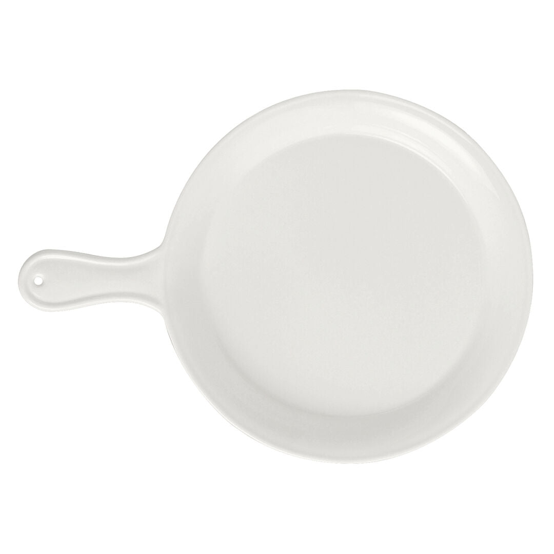 The crisp white finish provides a clean, professional backdrop that makes the vibrant colors of your food pop. The Presentation Pan design features a flat cooking surface and an integrated handle, mimicking traditional cookware to create a memorable dining experience. It is particularly effective for serving hot brunch dishes, pan-seared entrees, or shared appetizers.