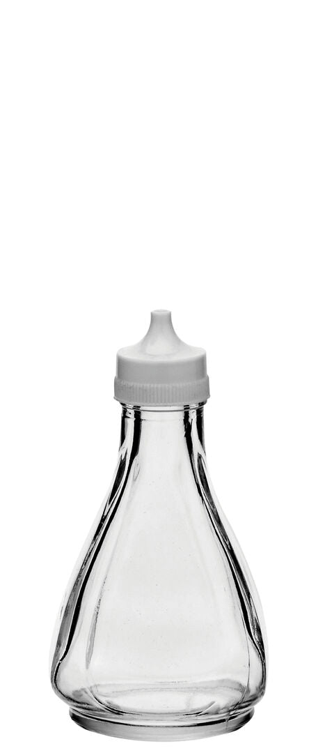 - Soda lime glass vinegar bottles designed for condiment table service.