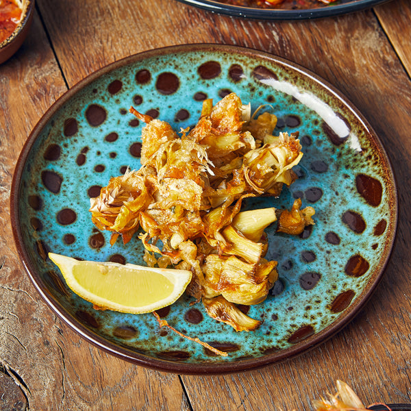 Manufactured using a twice-fired process at temperatures up to 1150°C, this low-porosity plate provides enhanced strength, durability, and chip resistance. The unique artisanal reactive glaze ensures natural kiln variations, giving each piece an individual finish while maintaining consistent professional quality.