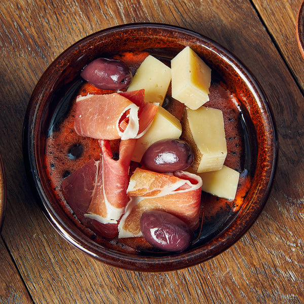 Professional vitrified terracotta tapas dishes designed for high-volume hospitality service, combining traditional rustic appeal with modern durability. Available in two compact sizes, these dishes are ideal for sauces, dips, olives, tasting portions, and small sharing plates in restaurants, hotels, and catering environments.