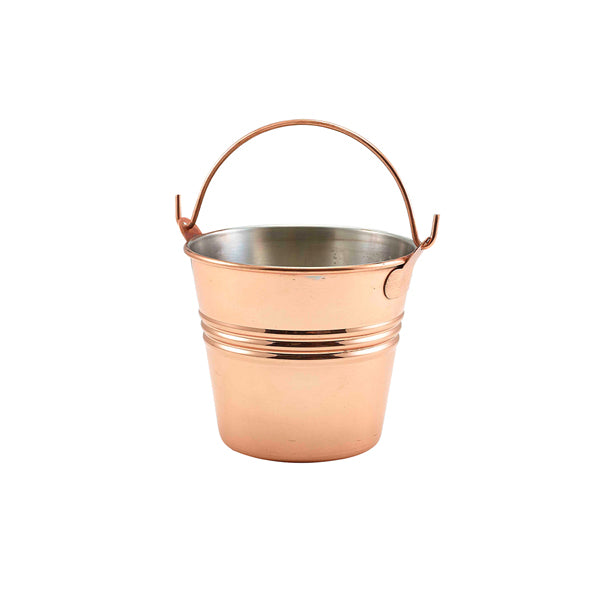Copper plated serving bucket designed for professional food presentation in hospitality and catering environments. Ideal for serving fries, side dishes or cutlery, this compact bucket offers a stylish alternative to traditional tableware.