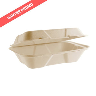 Pack Of 200 9 x 6in Heavyweight Large Bagasse Clamshell
