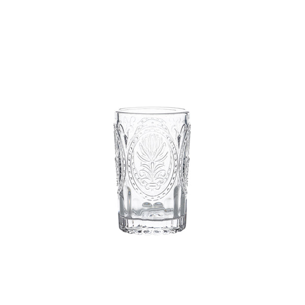 These vintage-style glass tumblers feature ornate embossed detailing and thick, durable walls, making them ideal for professional cocktail service and everyday hospitality use. Their timeless design enhances drink presentation while offering excellent clarity and strength suitable for bars, restaurants, and event venues.